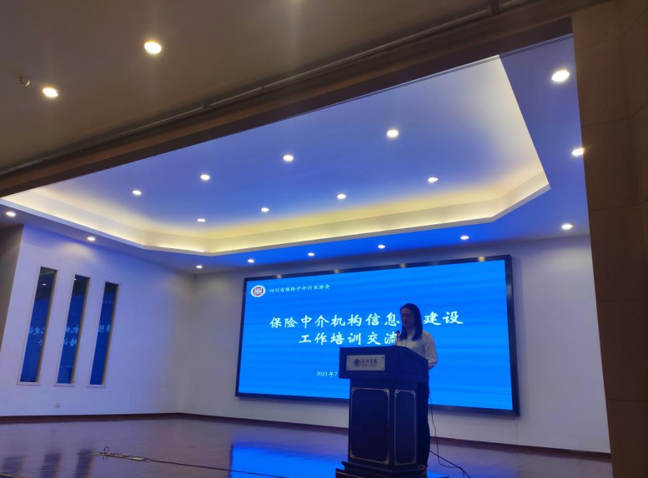 号文)要求,加强保险中介信息化建设,提高保险中介机构信息化工作与经营管理水平,确保各保险专业中介机构的信息化建设工作能在期限内整改完成,四川省保险中介行业协会于2021年7月15日,在成都市金河宾馆会议中心二楼大安厅召开“保险中介机构信息化建设工作培训交流会”。本次会议旨在进一步助力提升四川保险中介机构的合规能力,为保险中介机构信息化建设合规发展提供高效的解决方案,推动行业高质量发展。作为为四川省区域内74家保险中介机构进行了信息化系统解决方案的介绍。